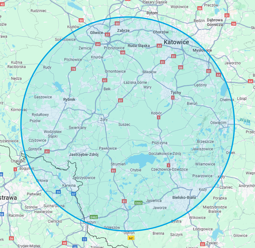 Mapa dojazdu usługi: